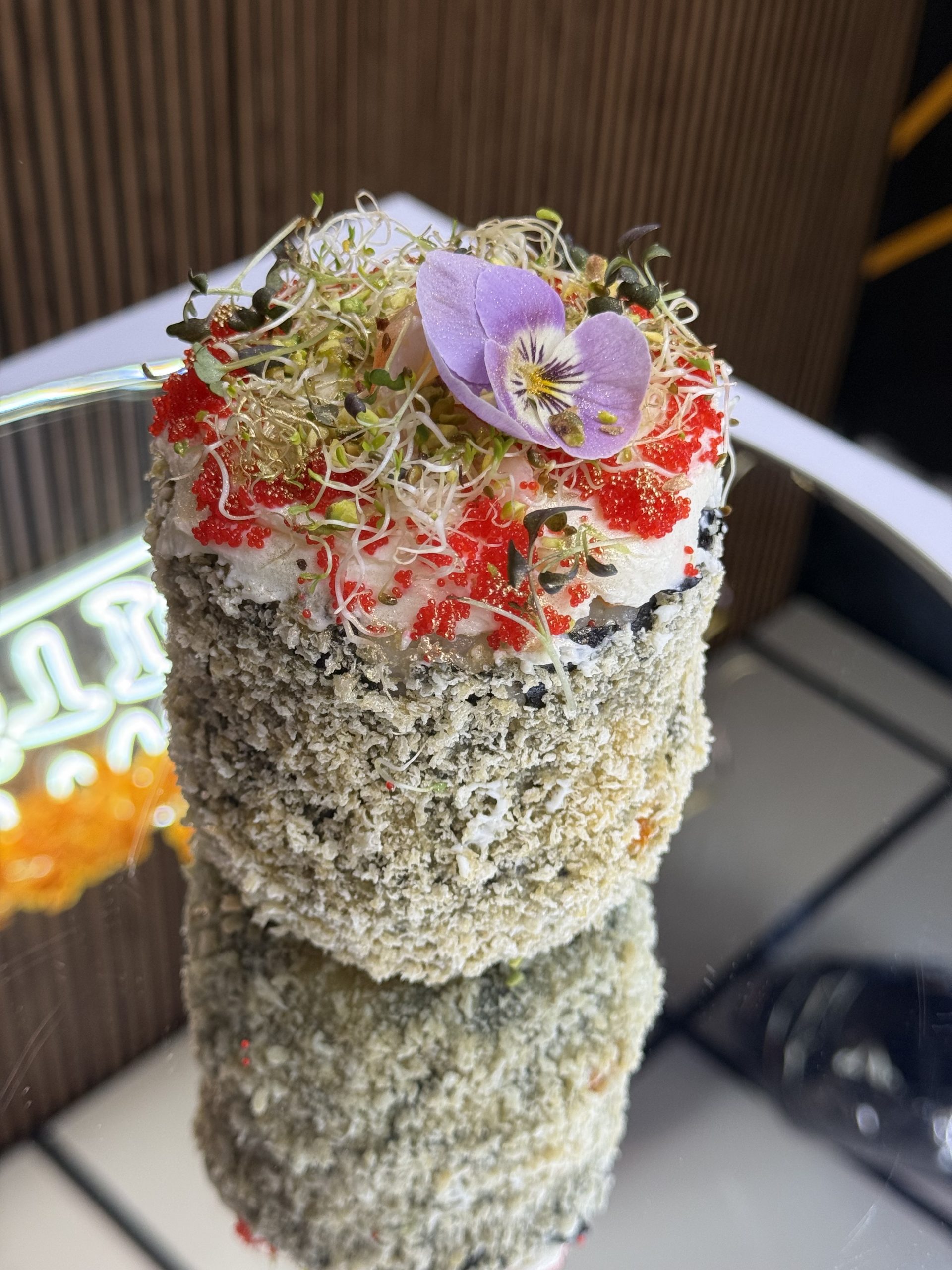 рис, нори, крем-сыр, лосось, черная темпура